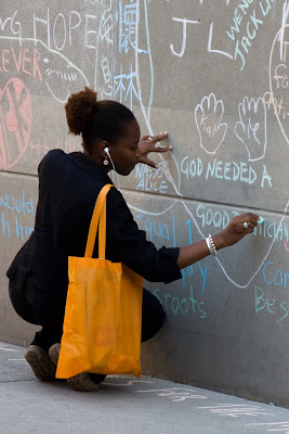 More photos of the Layton Memorial at City Hall. If it was concrete, it was chalked.